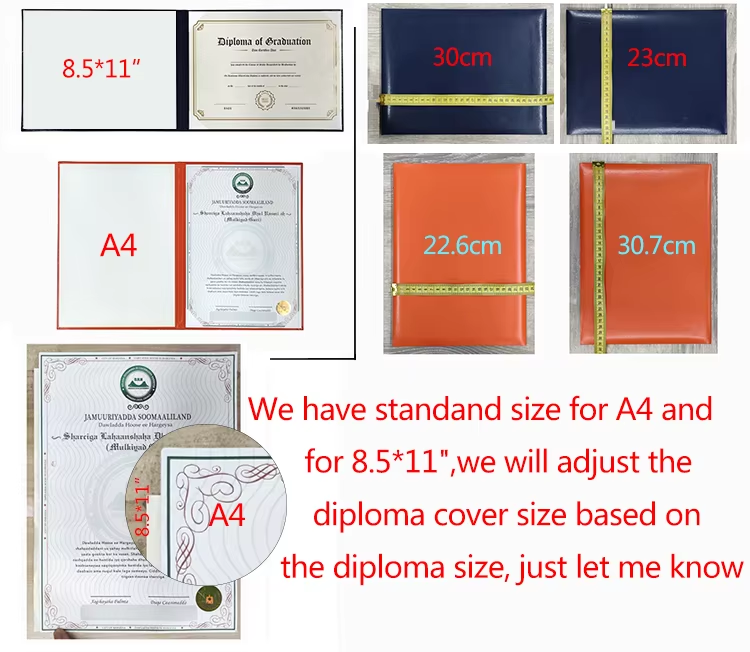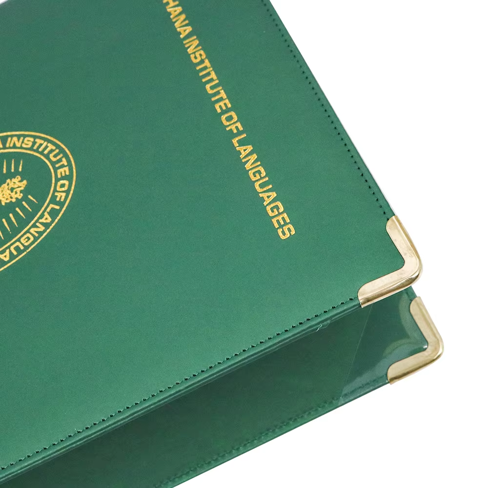 Se on sertifikaatin haltija, jonka on valmistanut: Ningbo Phyno. Suoritamme todistuksen haltijan tukkumyyntiä täydellä OEM -palvelulla: väri, pintakuviot, koot ja sisäiset mallit tiukasti kysynnän mukaan. Keskitymme luomaan kestäviä, tyylikkäitä haltijoita, jotka esittelevät sertifikaatteja henkilökohtaisella kosketuksella. Ota yhteyttä nyt saadaksesi mukautetun suunnittelusi ja lainaus!